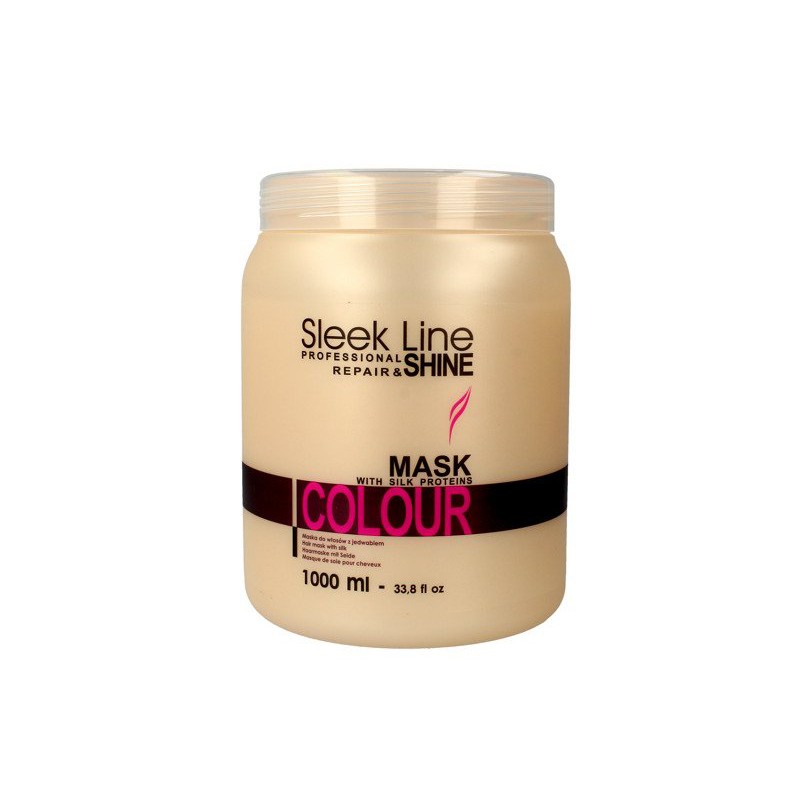 Maska Sleek Line Colour polecana jest do włosów farbowanych, intensywnie nawilża podkreślając kolor, nadając mu nowego blasku. Chroni przed wpływem czynników zewnętrznych, zawiera filtr UV. Dzięki zawartości jedwabiu i wyciągu z pestek słonecznika, maska intensywnie regeneruje włosy. Zawarty w masce wyciąg z migdałów nawilża i odżywia włosy, a kwasy owocowe zawarte w sokach cytrusów przedłużają trwałość koloru i jego blask. Maska jest przeznaczona do włosów i skóry zniszczonej po zabiegach fryzjerskich oraz chemicznych.