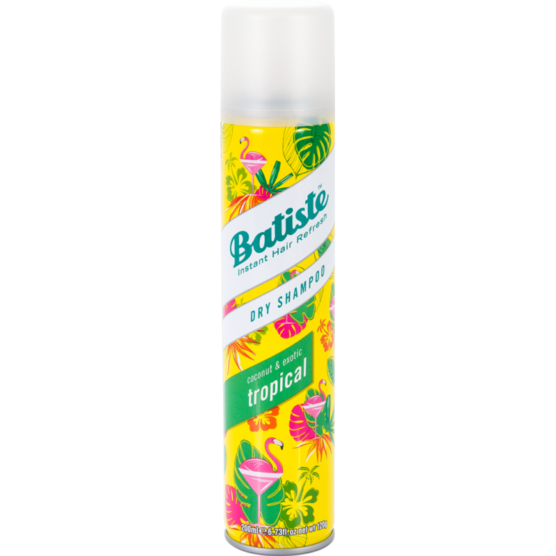 Batiste to seria suchych szamponów, które odświeżą fryzurę w kilka sekund bez użycia wody. Szampon wchłonie nadmiar sebum i pozostawi włosy czyste, pachnące i przyjemne w dotyku. Główny składnik suchego szamponu Batiste to skrobia ryżowa. Jest to szybkie i wygodne rozwiązanie, łatwe do zastosowania w każdych warunkach. Batiste Tropical to egzotyczny zapach łączący nuty kokosa, melona, banana i brzoskwini z ciepłą wanilią oraz drzewem sandałowym.