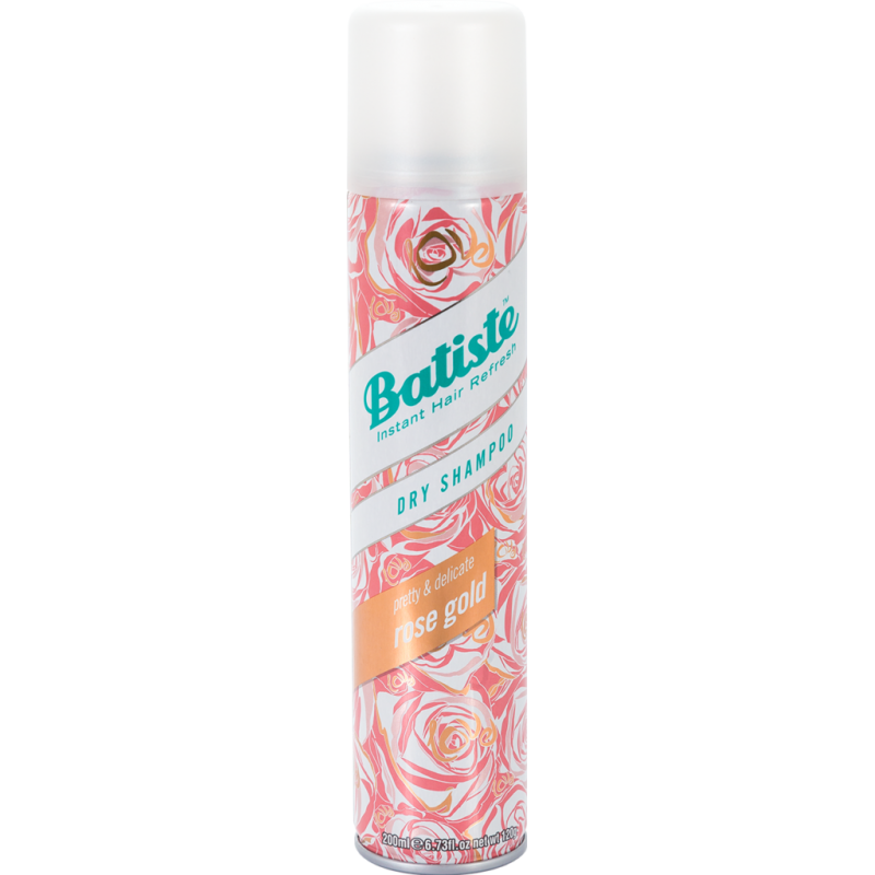 Batiste to seria suchych szamponów, które odświeżą fryzurę w kilka sekund bez użycia wody. Szampon wchłonie nadmiar sebum i pozostawi włosy czyste, pachnące i przyjemne w dotyku. Główny składnik suchego szamponu Batiste to skrobia ryżowa. Jest to szybkie i wygodne rozwiązanie, łatwe do zastosowania w każdych warunkach. Batiste Rose Gold to słodka kompozycja z wodą różaną, migdałami i wanilią.